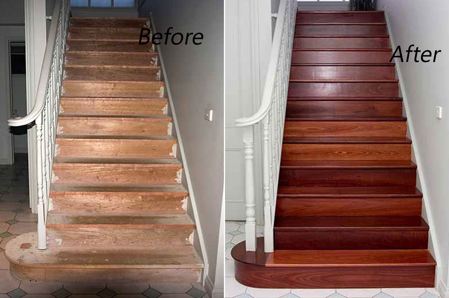 • Re-finishing a timber floor that has faded due to sunlight, traffic or other wear